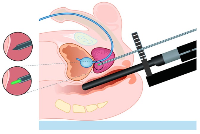 Interstitial brachytherapy involves placing radiation sources directly into the tumor using needles, ensuring precise dose delivery to cancerous tissue while sparing the bladder and rectum.
